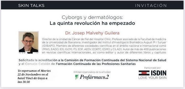 Dra. Josep Malvehy Guilera, Dir. unidad de Cáncer de Piel del H. Clinic de Barcelona. Ver invitación